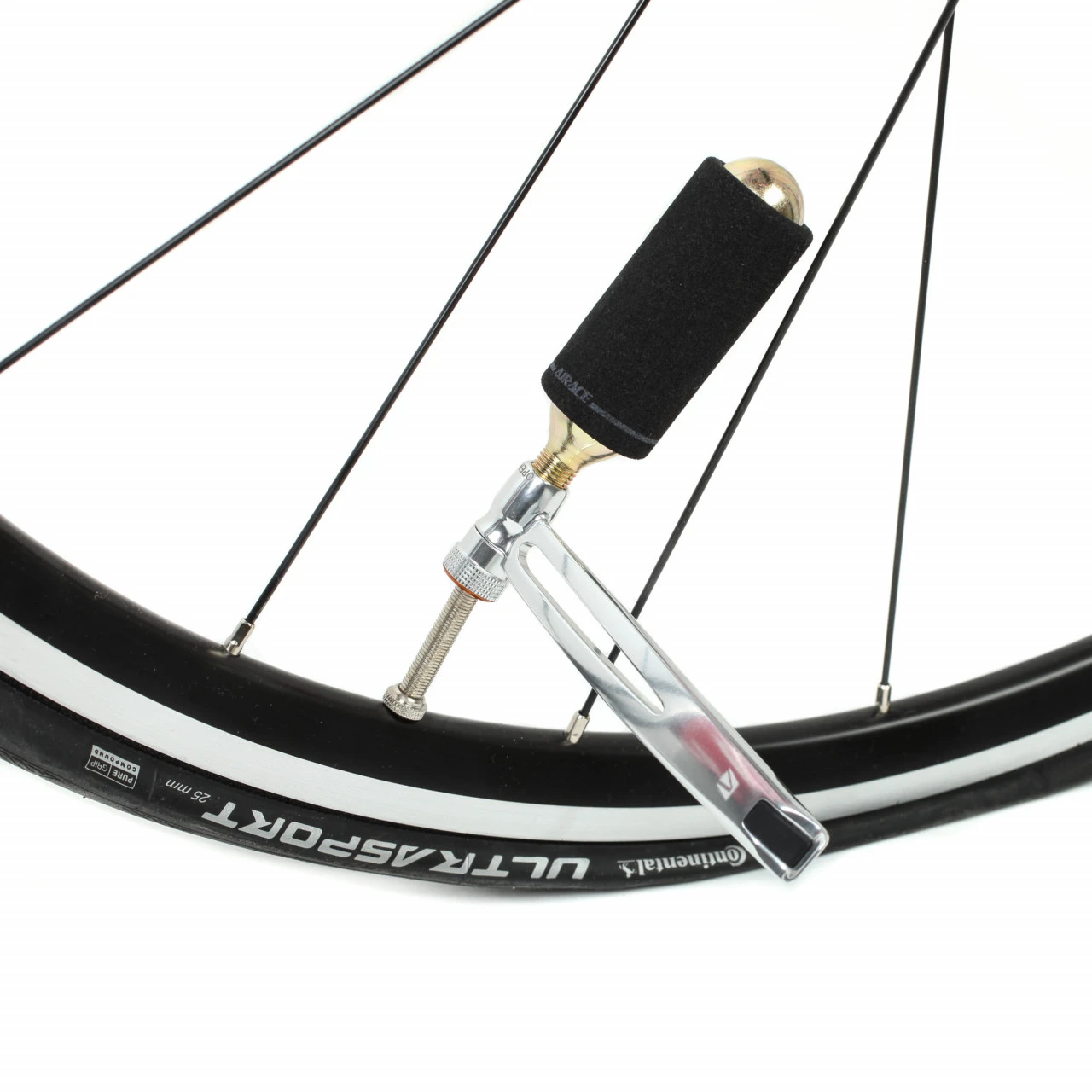 – 1x Metall-Reifenheber mit integriertem CO2 Pumpenaufsatz