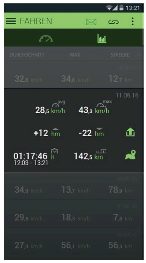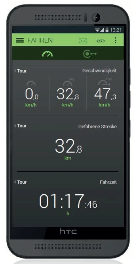 - zusÀtzlich kann das Smartphone als zweites AnzeigengerÀt benutzt werden, wenn es am Lenker befestigt wird. Somit lassen sich Tageskilometer, Durchschnittsgeschwindigkeit etc. anzeigen