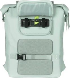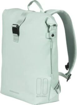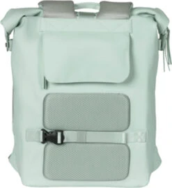 Der Basil SoHo Nordlicht Fahrradrucksack hat ein stilvolles und elegantes mintgrĂŒnes Design mit hochwertigen Details. Wird es auf dem Weg dorthin regnen? Das weiche, wasserdichte PU-Material (IPX3) und die versiegelten NĂ€hte sorgen dafĂŒr, dass der Inhalt der Tasche trocken bleibt. Verschlossen wird die Tasche mit einem Rollverschluss, den man mit Druckknöpfen an den Seiten befestigt (auch mit ReiĂverschluss). Der Rolltop-Verschluss wird mit der praktischen Schnappschnalle gesichert und hat einen verstellbaren Riemen, damit der Inhalt sicher verpackt werden kann.