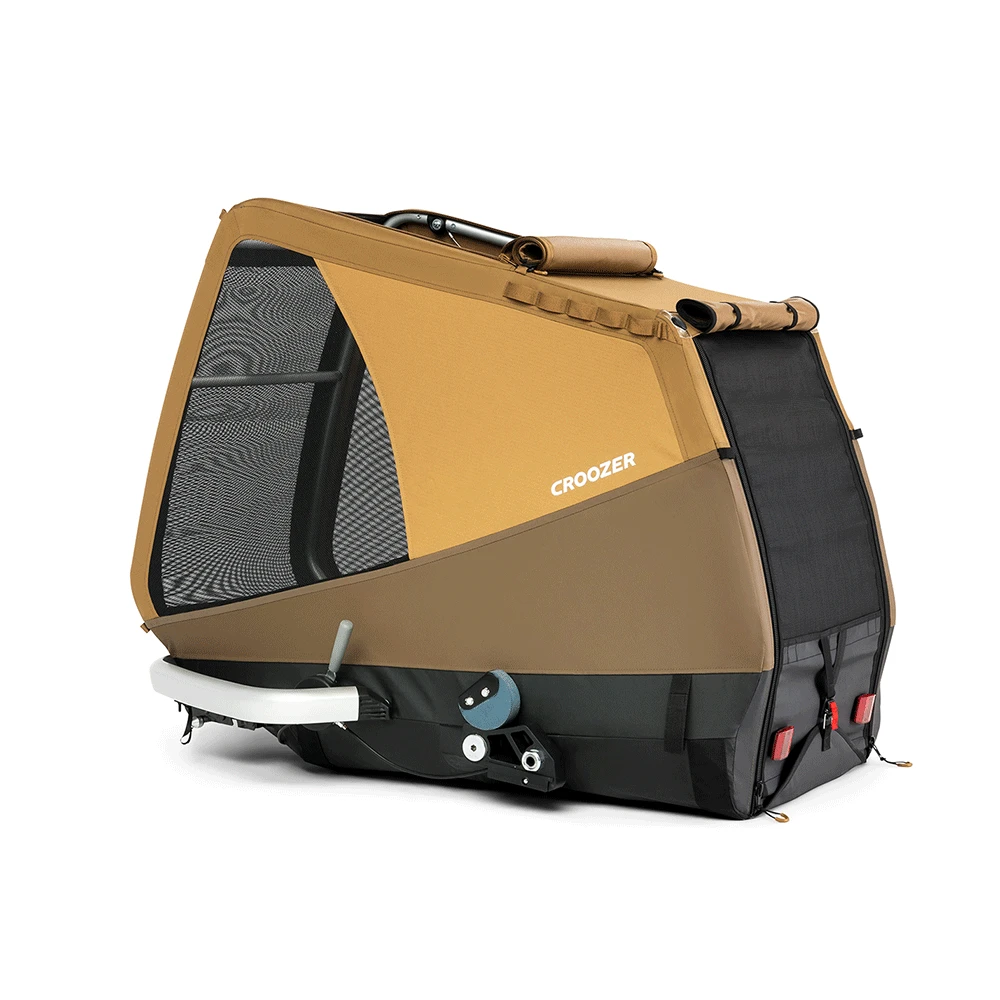 FahrradanhĂ€nger fĂŒr den Transport von groĂen Hunden bis 45 kg. Mit Croozer AirPad Federung, gelĂ€ndetauglicher Bereifung und komfortablem Faltsystem.