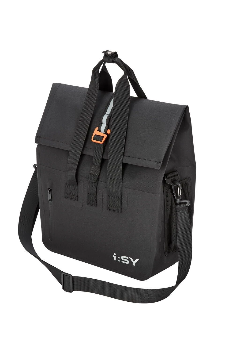 Der iSY Travel Bag, die FronttrĂ€ger Tasche mit KLICKfix Adapterplatte, ist der ideale Helfer bei groĂen Besorgungen oder auf der groĂen Picknick-Tour.