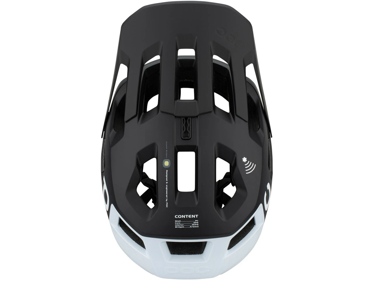 Der Kortal Race MIPS Helm von POC fĂŒr Enduro-Fahrer und E-Mountainbiker schĂŒtzt Deinen Kopf bei StĂŒrzen mit MIPS® Integra und hat fĂŒr NotfĂ€lle einen NFC-Chip integriert, von dem wichtige Kontakte und medizinische Daten abgerufen werden können.